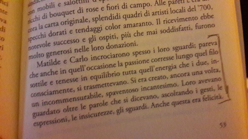 silenziosamente, aveva stravolto il naturale fluire delle cose. Cercava di capire quando e come fosse successo, ma si rendeva solo conto che ci sono felicità intensamente assurde che uno scopre per caso.”