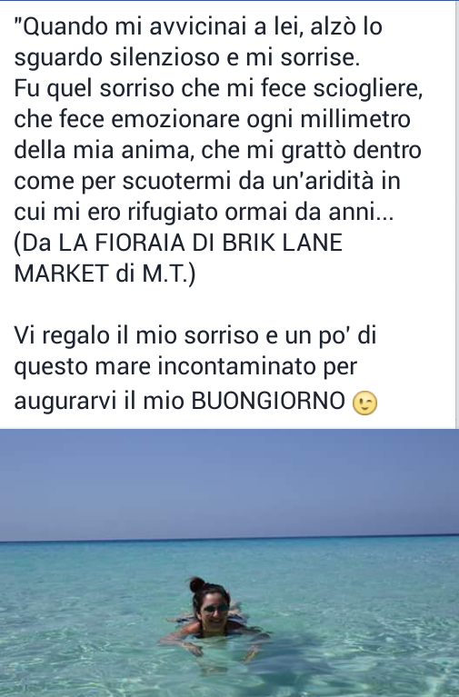 “A lei bastava il mare o l’odore delle onde e della salsedine per sentirsi viva e ricordarle di essere parte di un disegno molto grande, di essere parte pulsante dell’universo intero…”