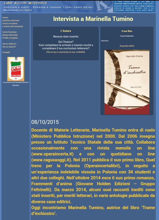 Si parla di me, della mia passione per la scrittura e di TRAME D’INCHIOSTRO…