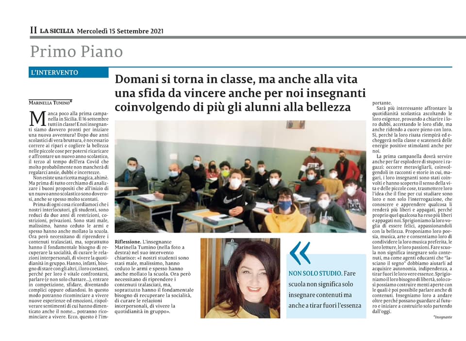 Buongiorno cosí …con il mio articolo pubblicato su LA SICILIA di oggi
